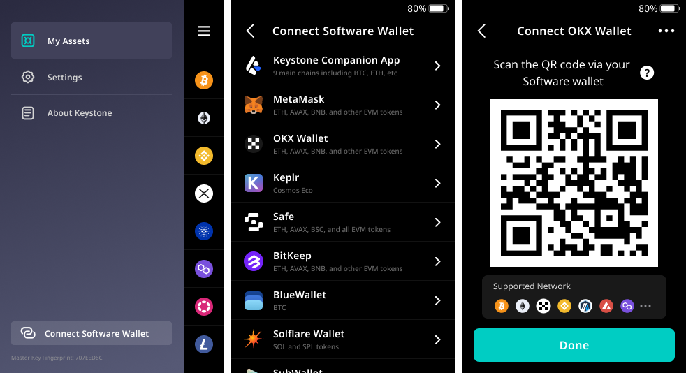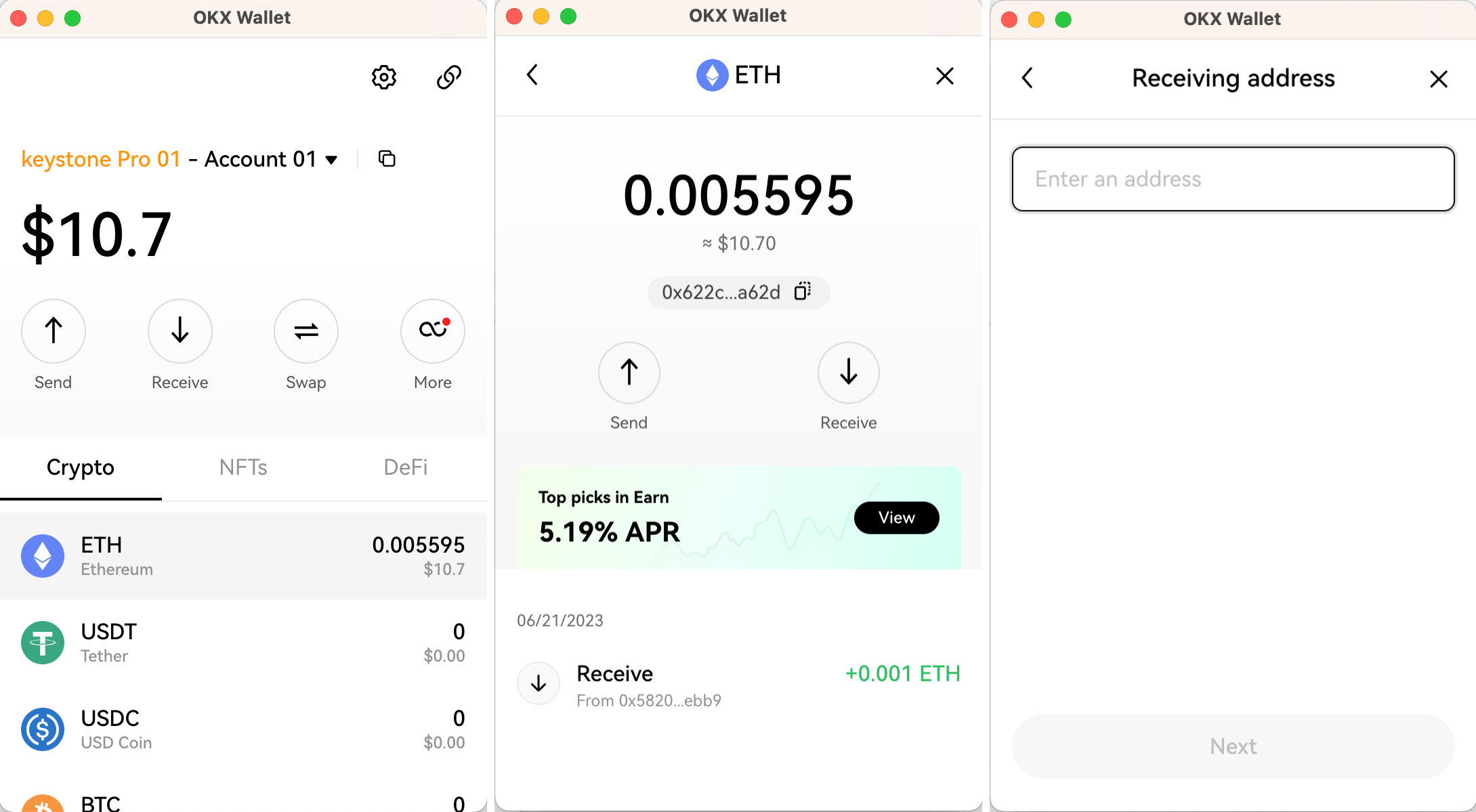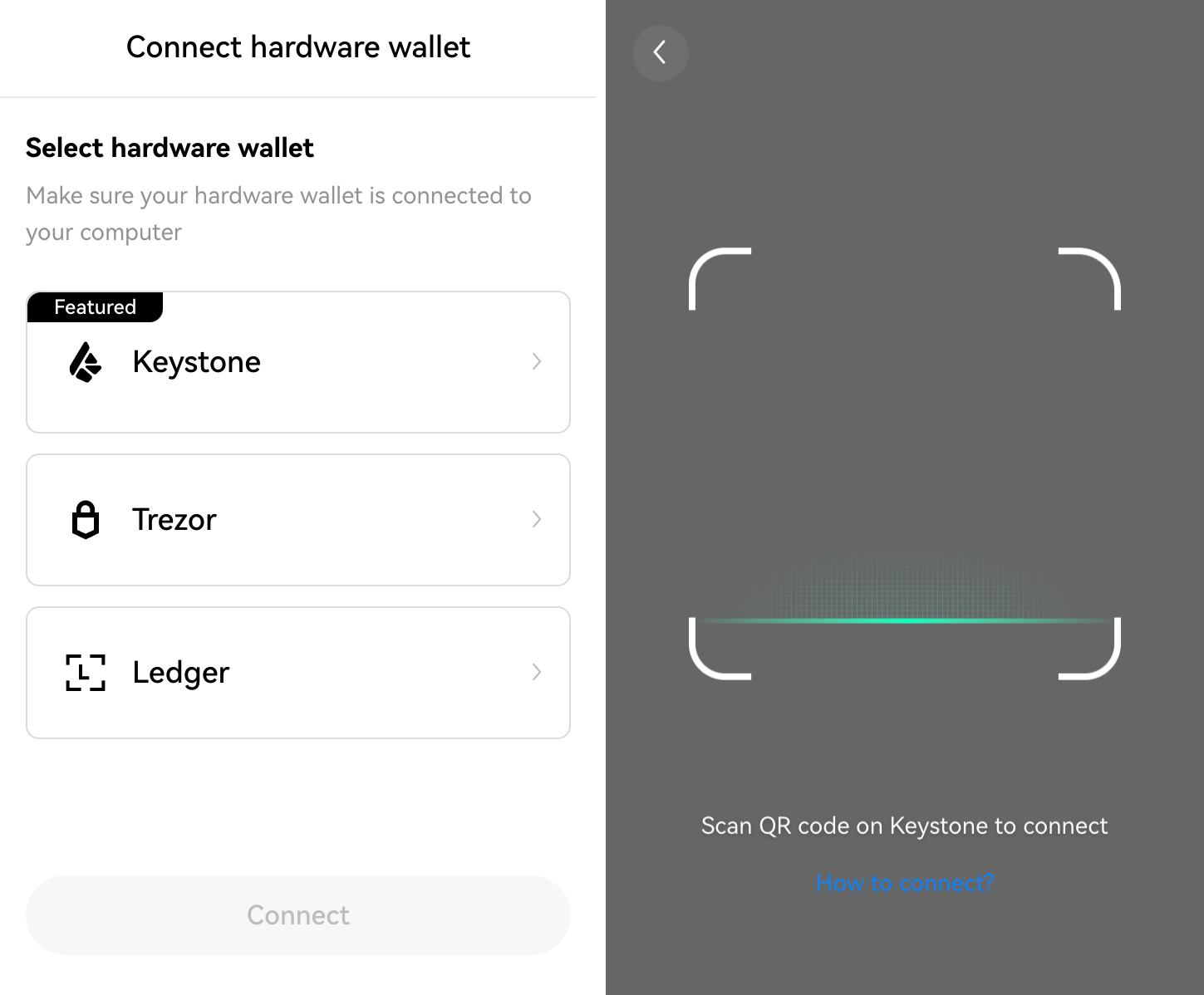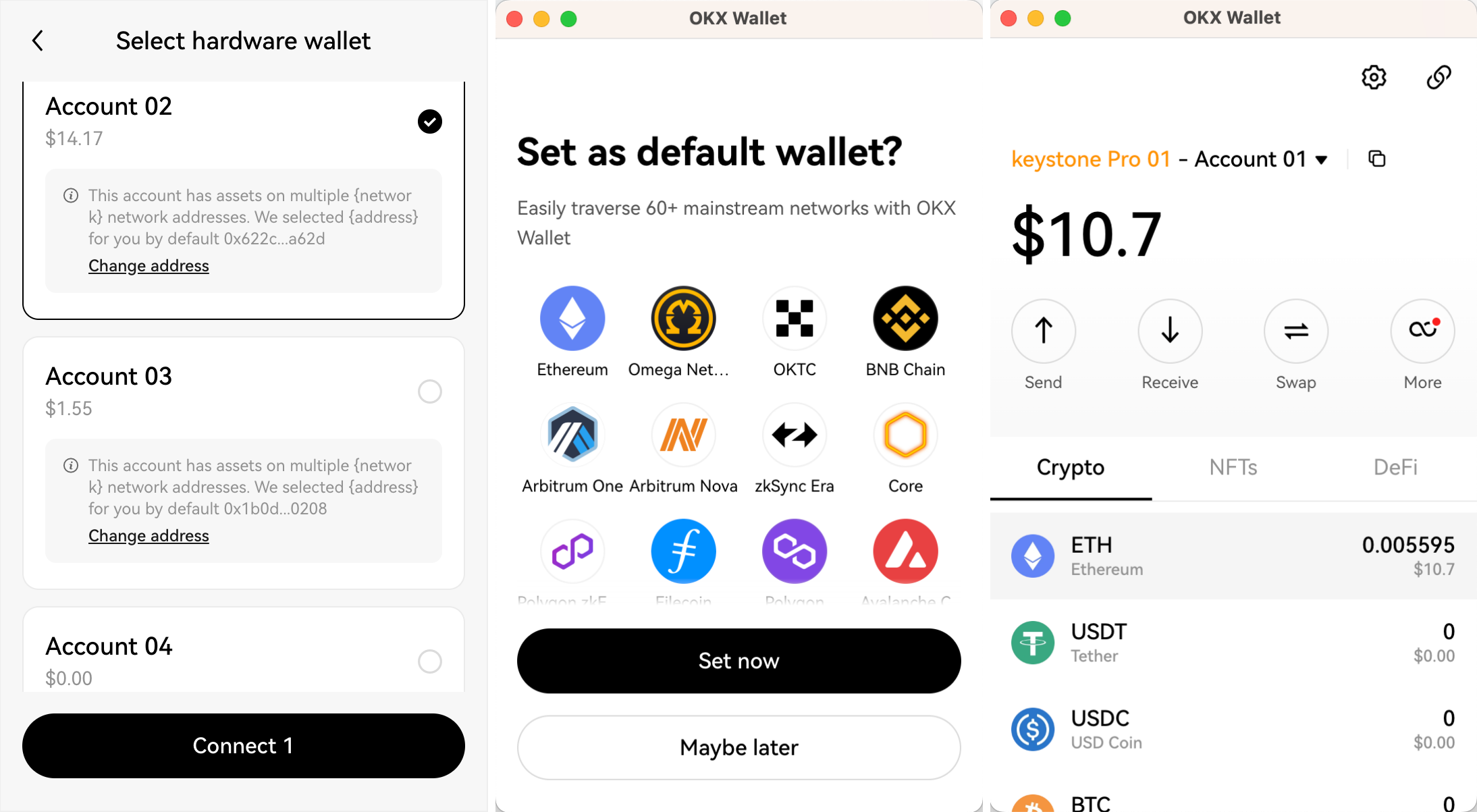 **Note**: Right now, you can use the OKX Wallet to access BTC and ETH once you've connected with Keystone. We're also working on adding more coins, so stay tuned for updates!