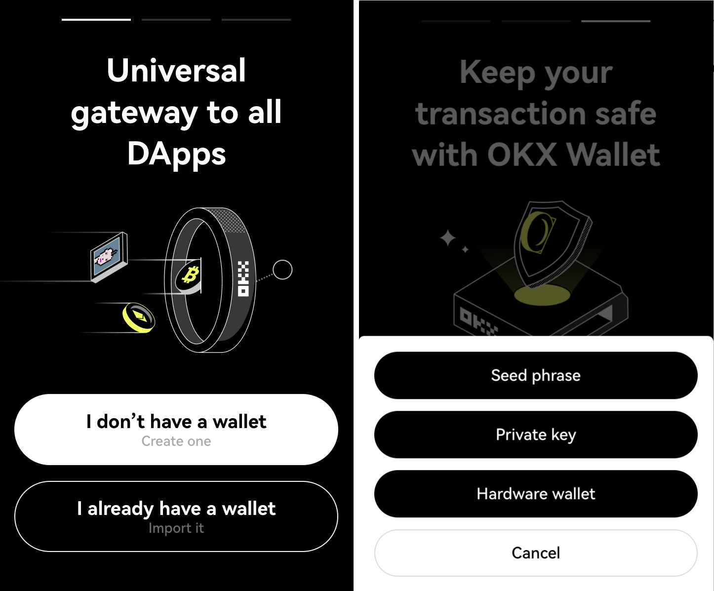 3. Open the OKX Extension and select "I already have a wallet".<br>