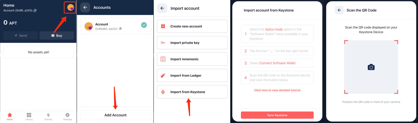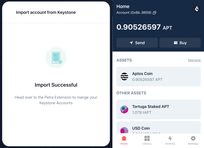 ### 二、將您的 Keystone 硬件錢包導入 Petra <a href="#id-7vux8g4ebop6" id="id-7vux8g4ebop6"></a>