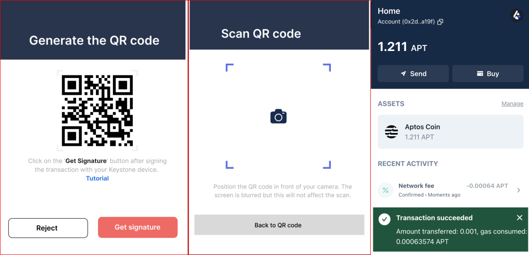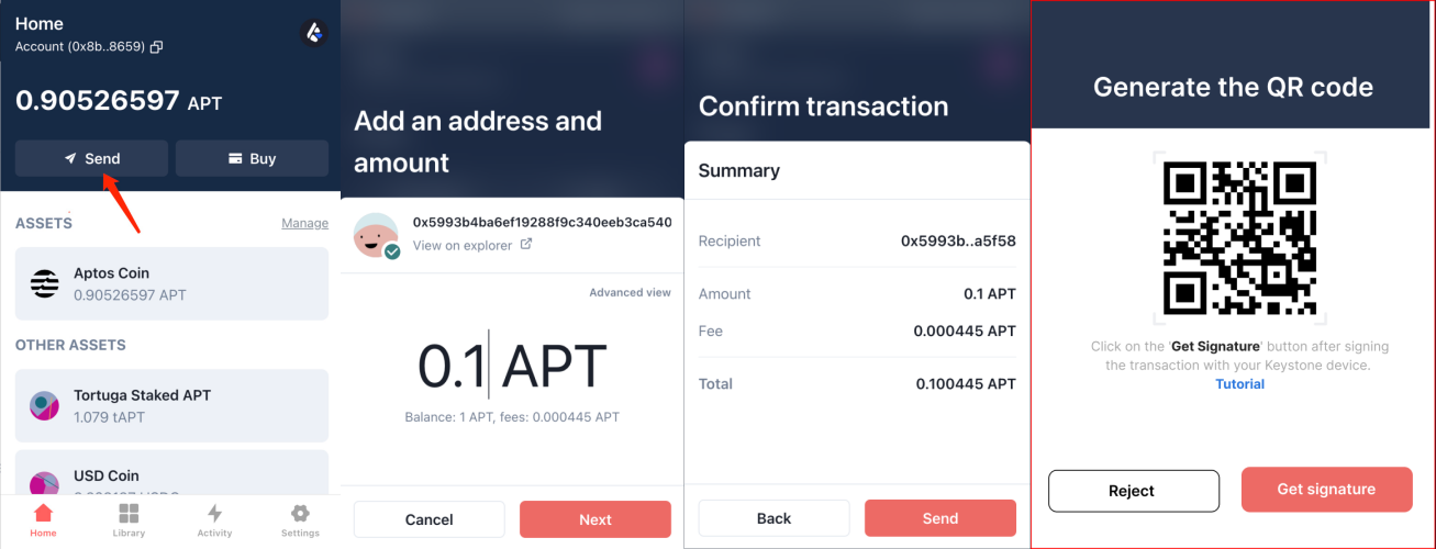 ### 三、使用您的 Keystone 硬件錢包發送 APT <a href="#id-83oktml4l7wr" id="id-83oktml4l7wr"></a>